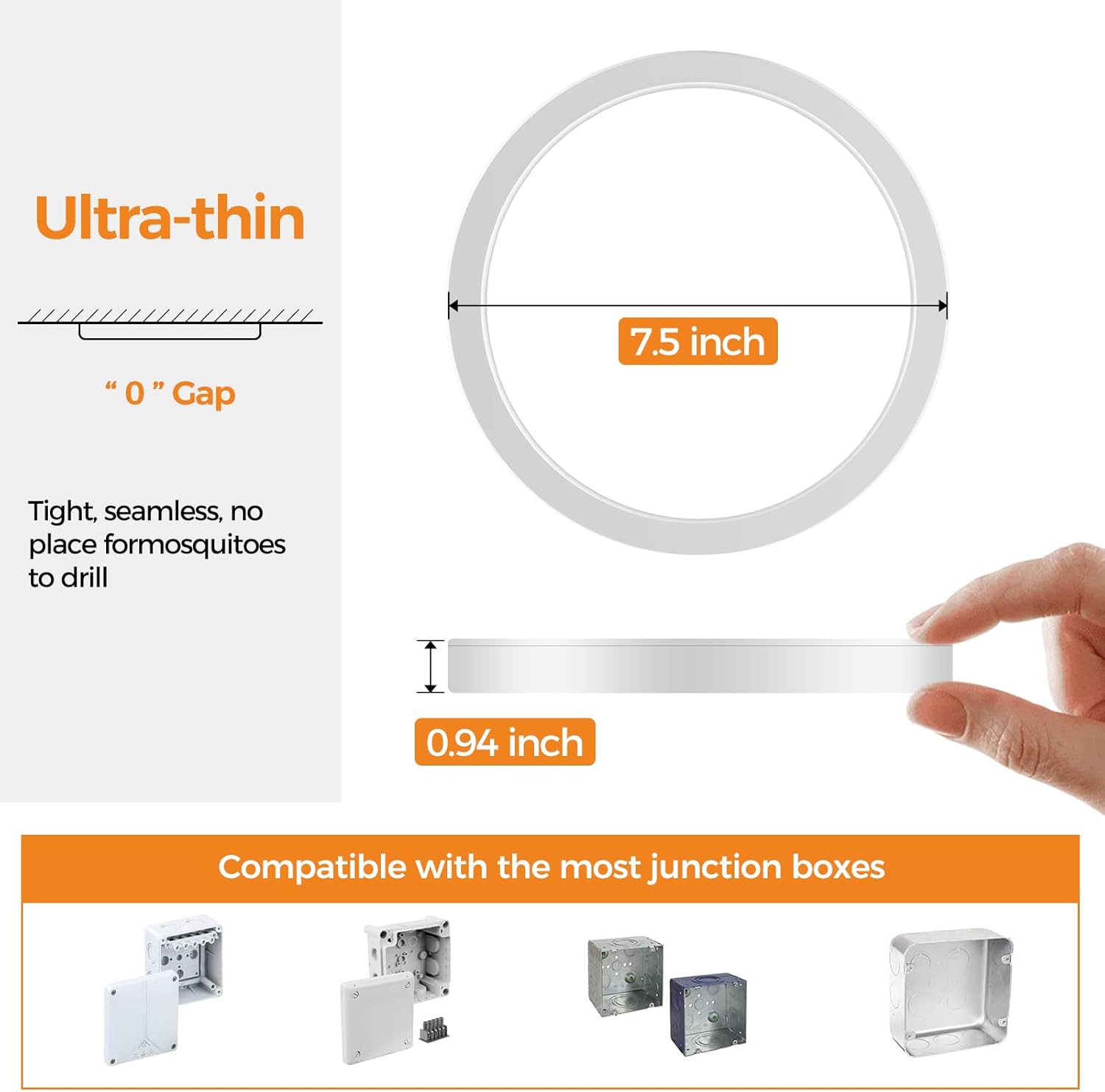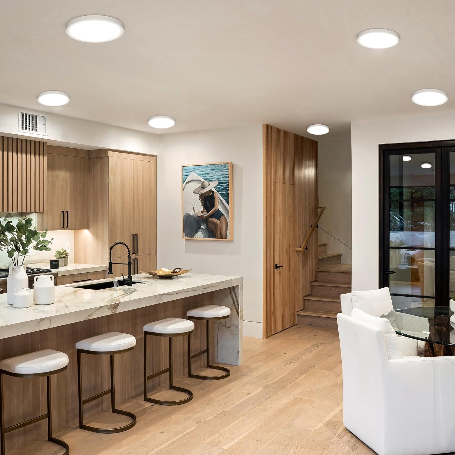 8PACK LED Flush Mount Ceiling Light Fixture, 3000K-4000K-6500K & 100W Equivalent Modern Kitchen Recessed Ceiling Lamp 15W 1500Lm 7.5 Inch Closet Round Surface for Bathroom Laundry Bedroom Hallway