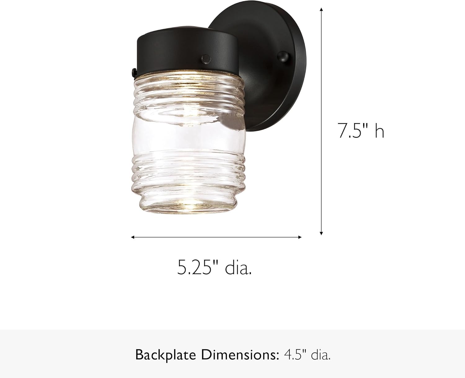The Design House 2-Pack Jelly Jar 1 Light Wall Light features an oil rubbed finish, clear glass and a nautical design. This light glows like a stern or bow light. With glare-free illumination and spot-on color rendition, this light is perfect for your porch or backyard. Use this light to deter burglars and thieves and maintain a well-lit porch. A wall mount with 4.5-inch (D) back plate attaches to the light, improving stability and balance. It uses a 60-watt bulb (not included).