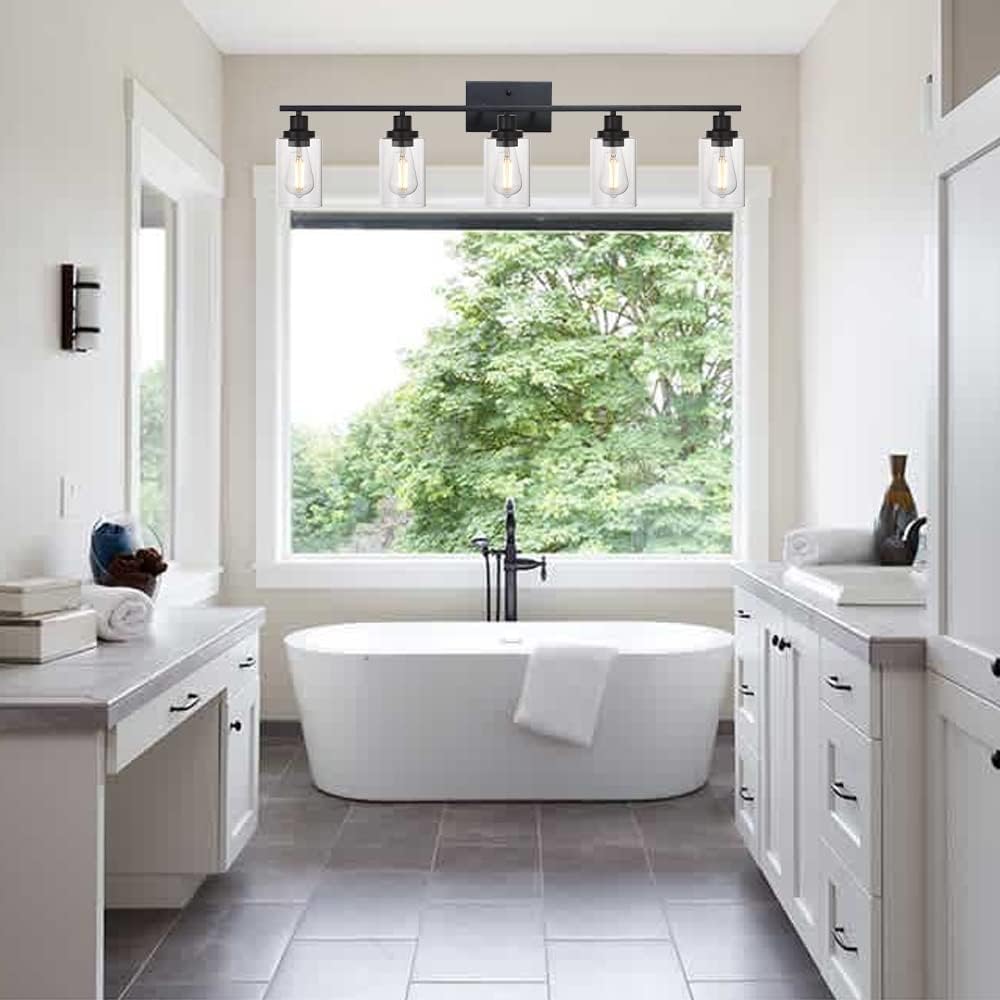 MELUCEE 40 Inches Length 5-Light Bathroom Vanity Light Fixtures Black Industrial Wall Sconce Lighting with Clear Glass Shade for Living Room Bedroom Hallway Kitchen (Patent No.: US D963914 S)