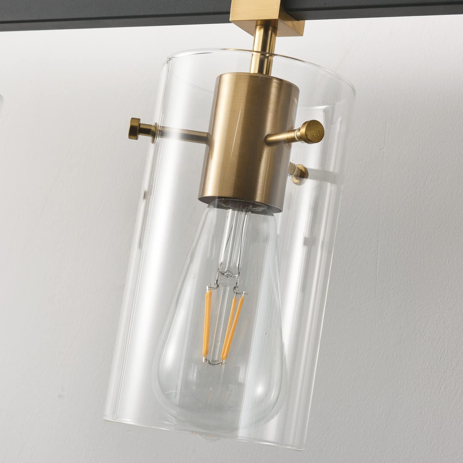 SOLFART Vintage Vanity Lights Bathroom Light Fixture Over Mirror for Bath Glass Shade Light Black and Brass Modern Style 3 Lights